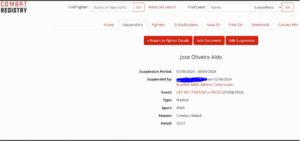 - CABMMA Medical Suspension List – José Aldo, disponível em: https://cabmma.org.br